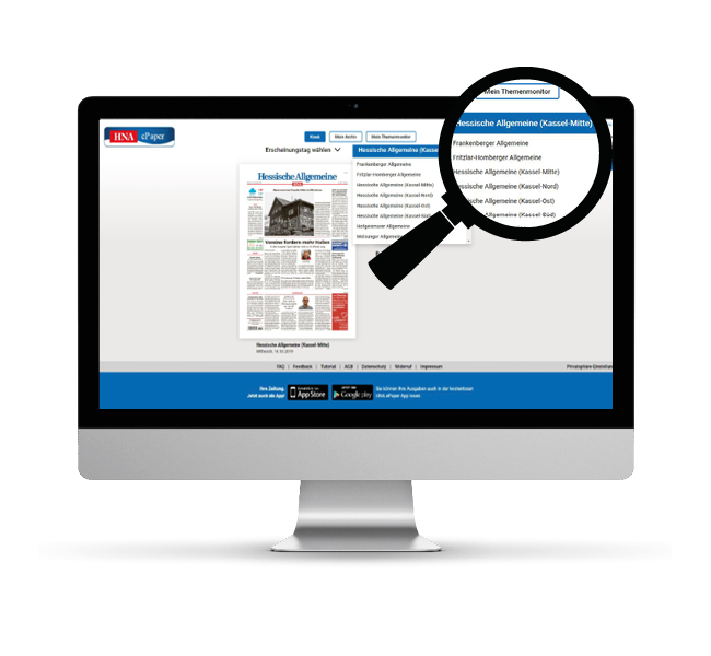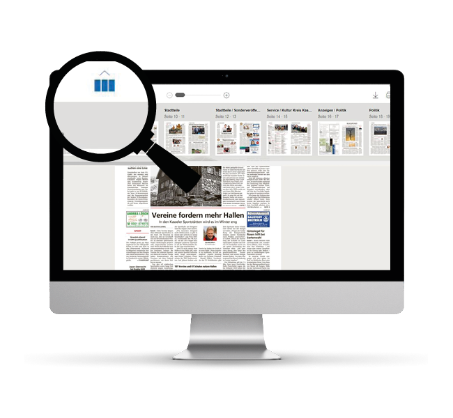 Durch Klicken auf einzelne Artikel öffnet sich die Artikelansicht. Über "Zurück" am oberen Ende der Artikelansicht kommen Sie zurück in die gewohnte Zeitungsansicht. Über die Pfeile am unteren Ende der Artikelansicht können Sie in den nächsten Artikel wechseln ohne die Artikelansicht zu verlassen.