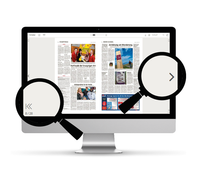 Mit Ihrem Mausrad oder durch Verschieben des Reglers können Sie in Zeitungsseiten hinein- und herauszoomen.
