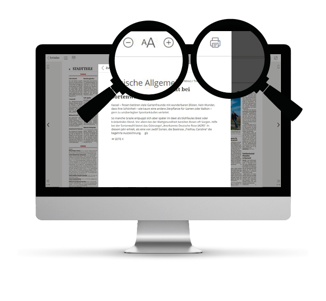 Innerhalb der Artikelansicht können Sie über die Regler die Schriftgröße nach Ihren Wünschen ändern und den ausgewählten Artikel drucken.